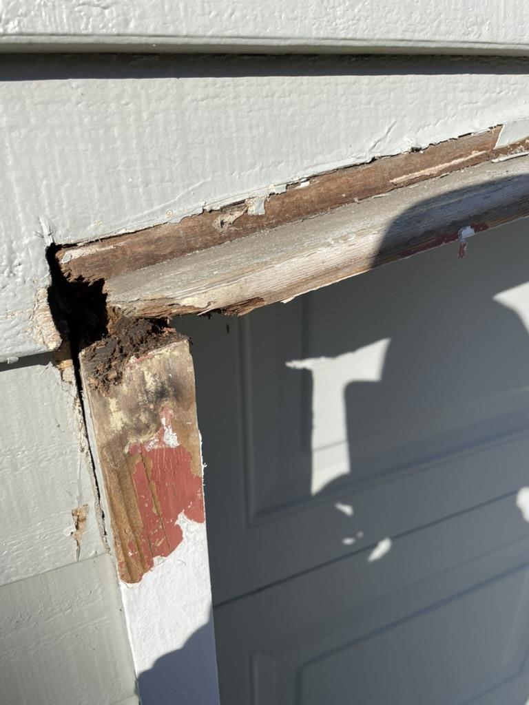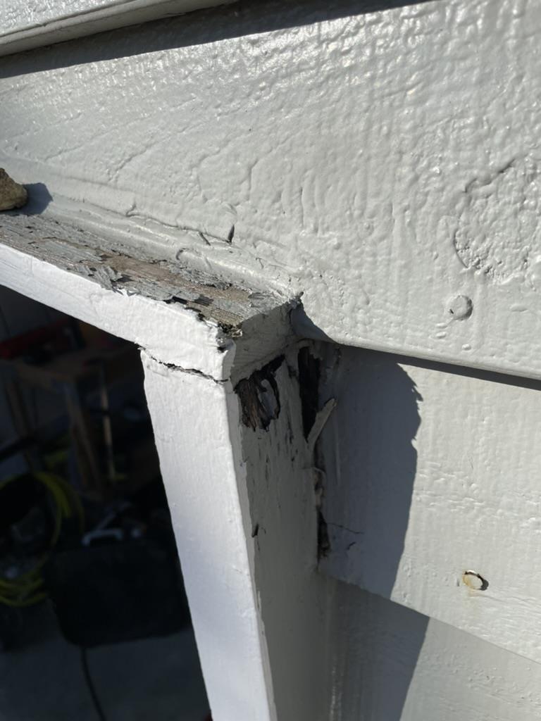 case, the rot had compromised the siding, trim, and sheathing. A thorough inspection ensured